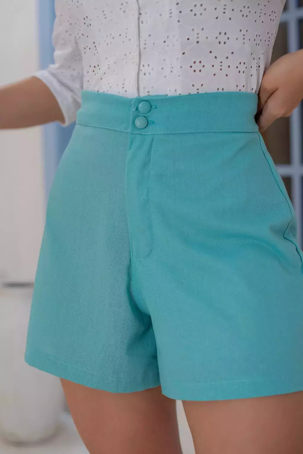 Short alfaiataria com botões encapados e forrado.